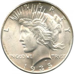 As stated above, the 1935 edition Peace Dollar is of limited mintage and may become more and more difficult to come by with the passage of time. Due to robust demand for these coins, the price of this coin regularly exceeds $40. If and when a coin in pristine condition goes up for auction, the price of that coin can exceed $85. Recent sales prices saw the price of this coin range from $44 to $88.